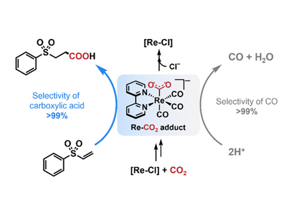 fac-Re(2,2′-bipyridine)(CO)3Cl Catalyzes Visible-Light-Driven Functionalization of an Organic Substrate with CO2